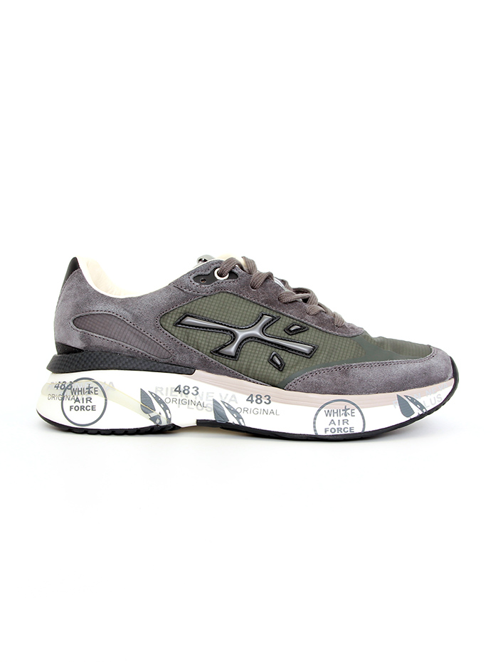 • Pelēka zamšāda un zaļš tekstils